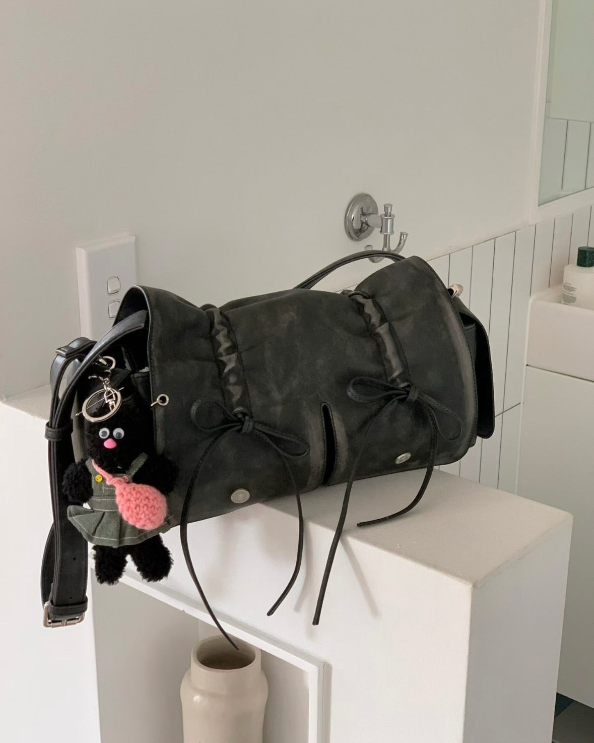 Featuring a striking ribbon bow accent and premium synthetic leather construction, this bag transitions seamlessly from day to night. Available in two sizes—the spacious standard and compact mini—you can choose the perfect fit for your lifestyle.