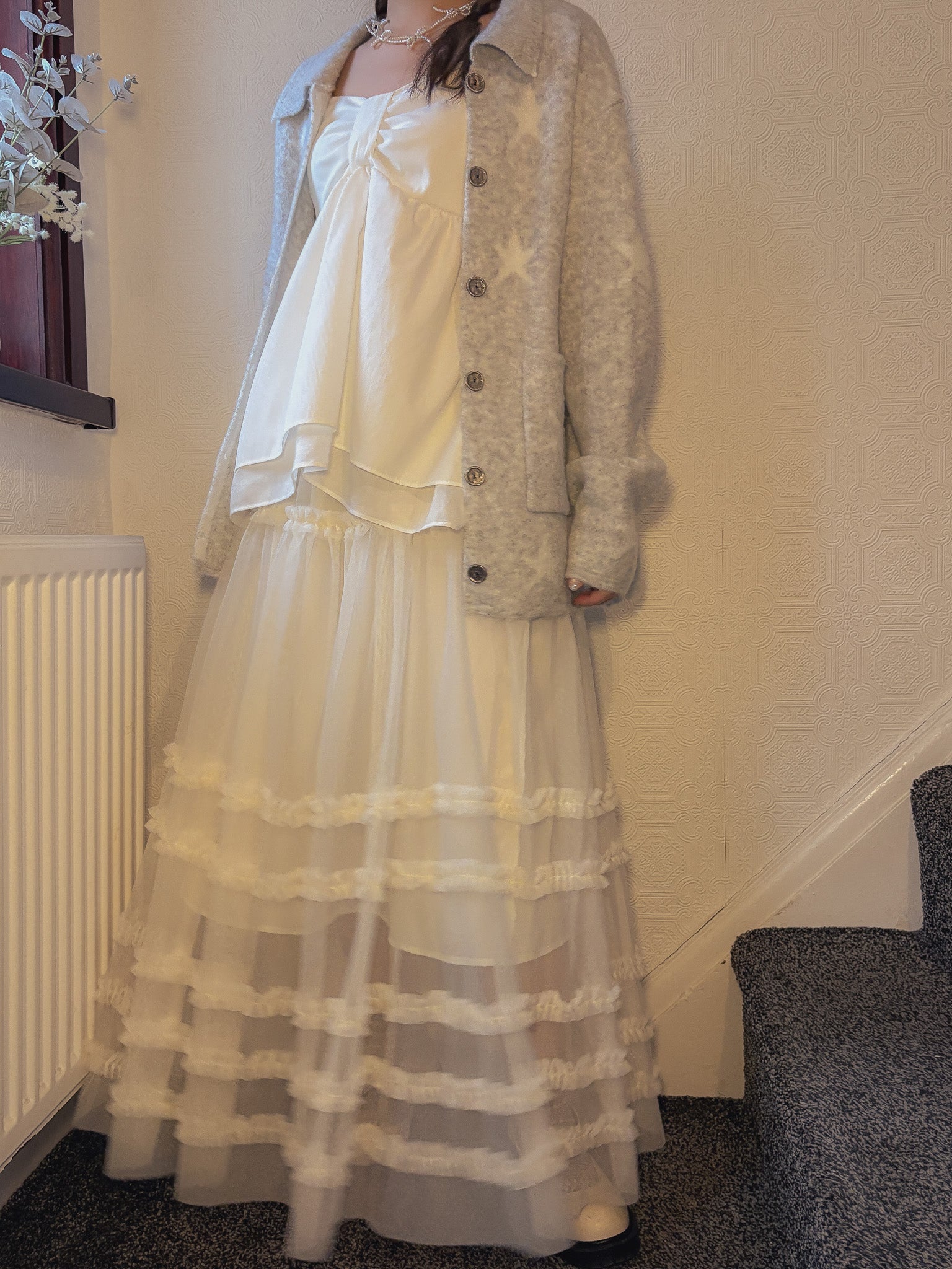 Crafted from lightweight chiffon with delicate lace detailing, this skirt features a comfortable underlining for added coverage and movement. The slightly relaxed long fit is modelled on someone 156cm tall and is ideally suited for girls 160cm and above, if you want a flattering length that skims beautifully without touching the ground.