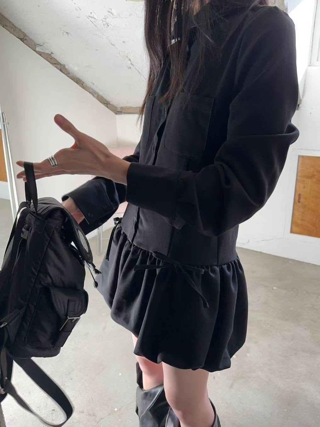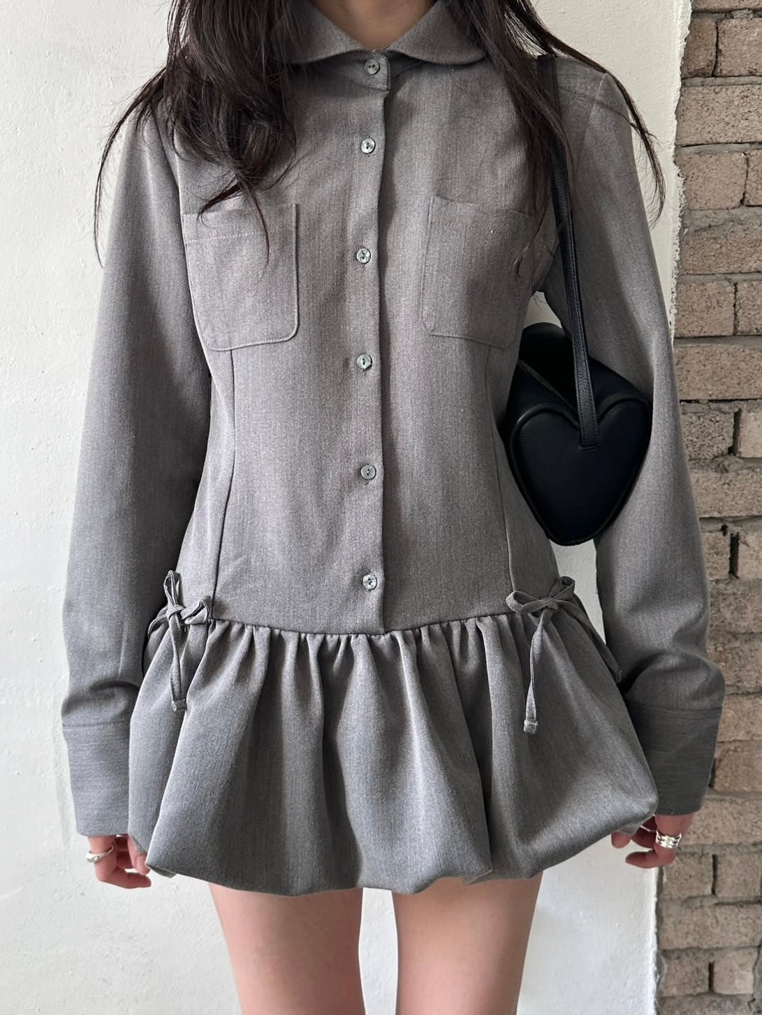 Discover the charm of Korean design with this stunning Puff Ribbon Dress. Featuring a sleek, fitted bodice that skims your waist beautifully, it transitions into a balloon skirt. The delicate ribbon detailing adds an elegant touch that sets this one-of-a-kind piece apart. Perfect for those seeking contemporary formal style with a playful twist.