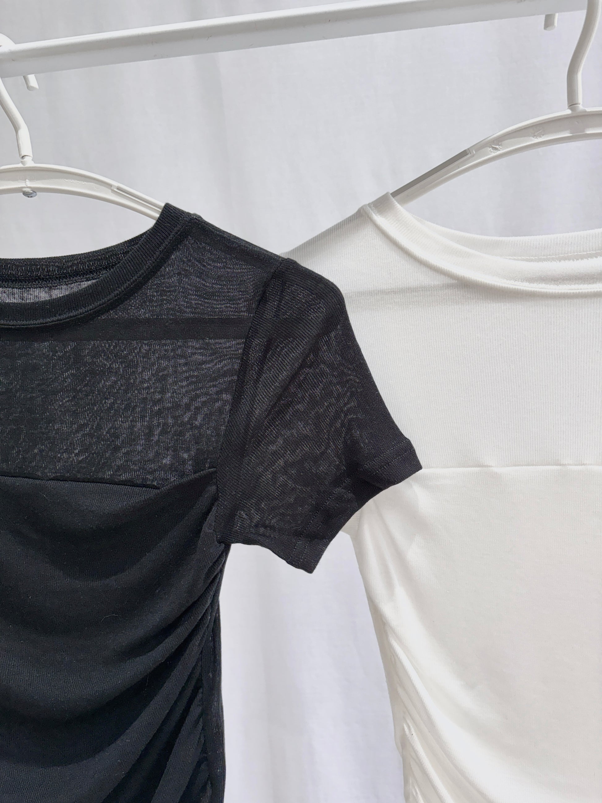 Half Sheer Double Layered Shirring Tee (2 Colours)