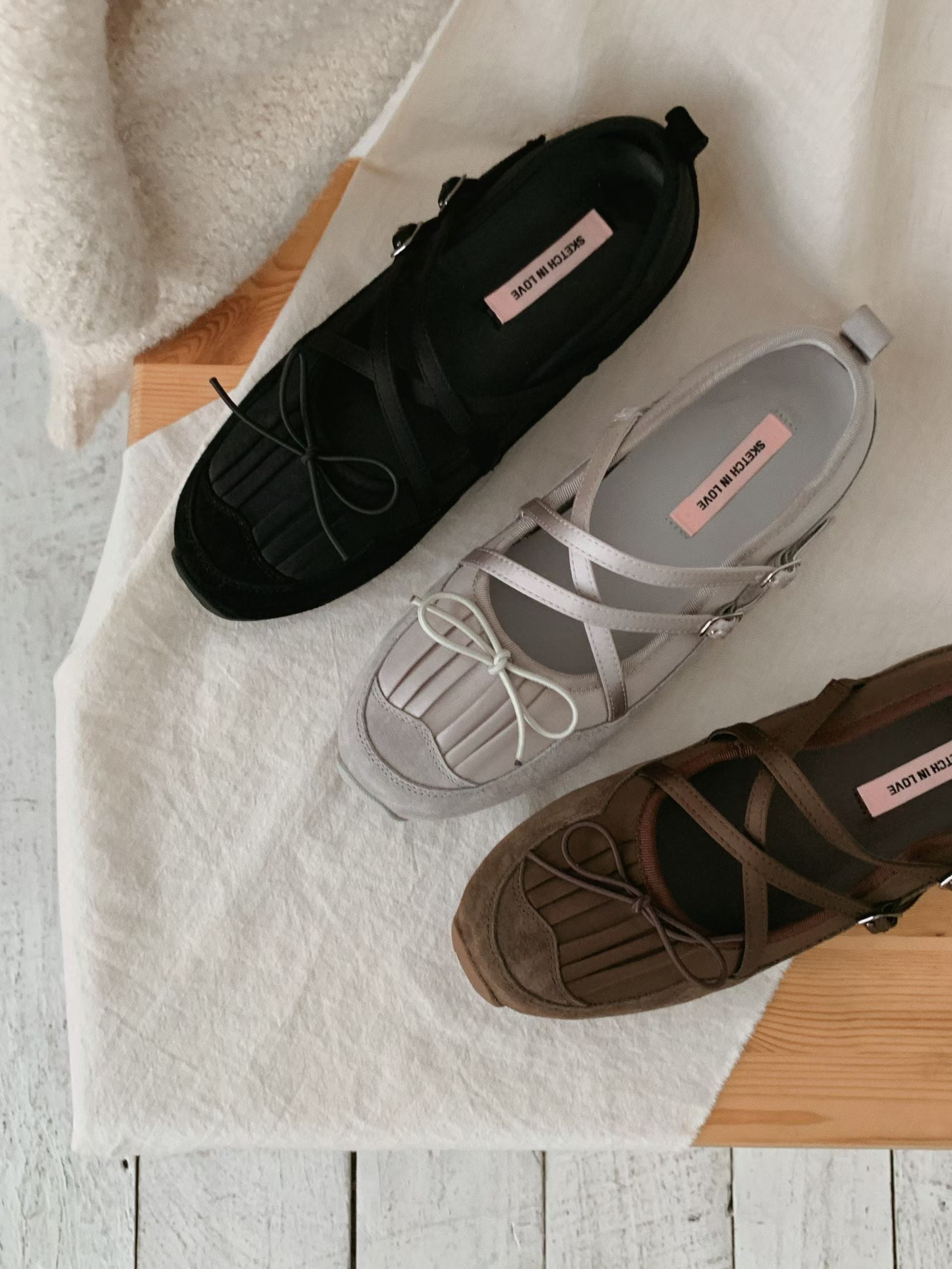 以高密度緞面布料製成的鬚邊與蝴蝶結細節,柔美又精緻的休閒鞋款!