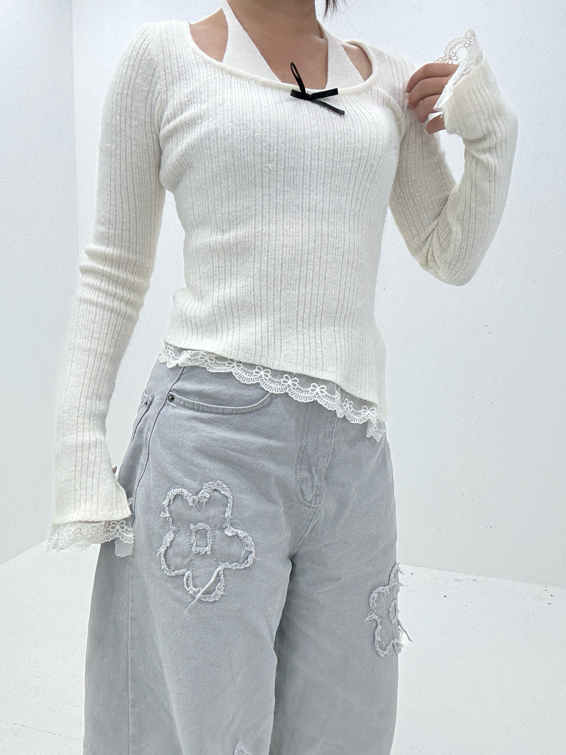 (Preorder) Halter Ribbon Lace Knit