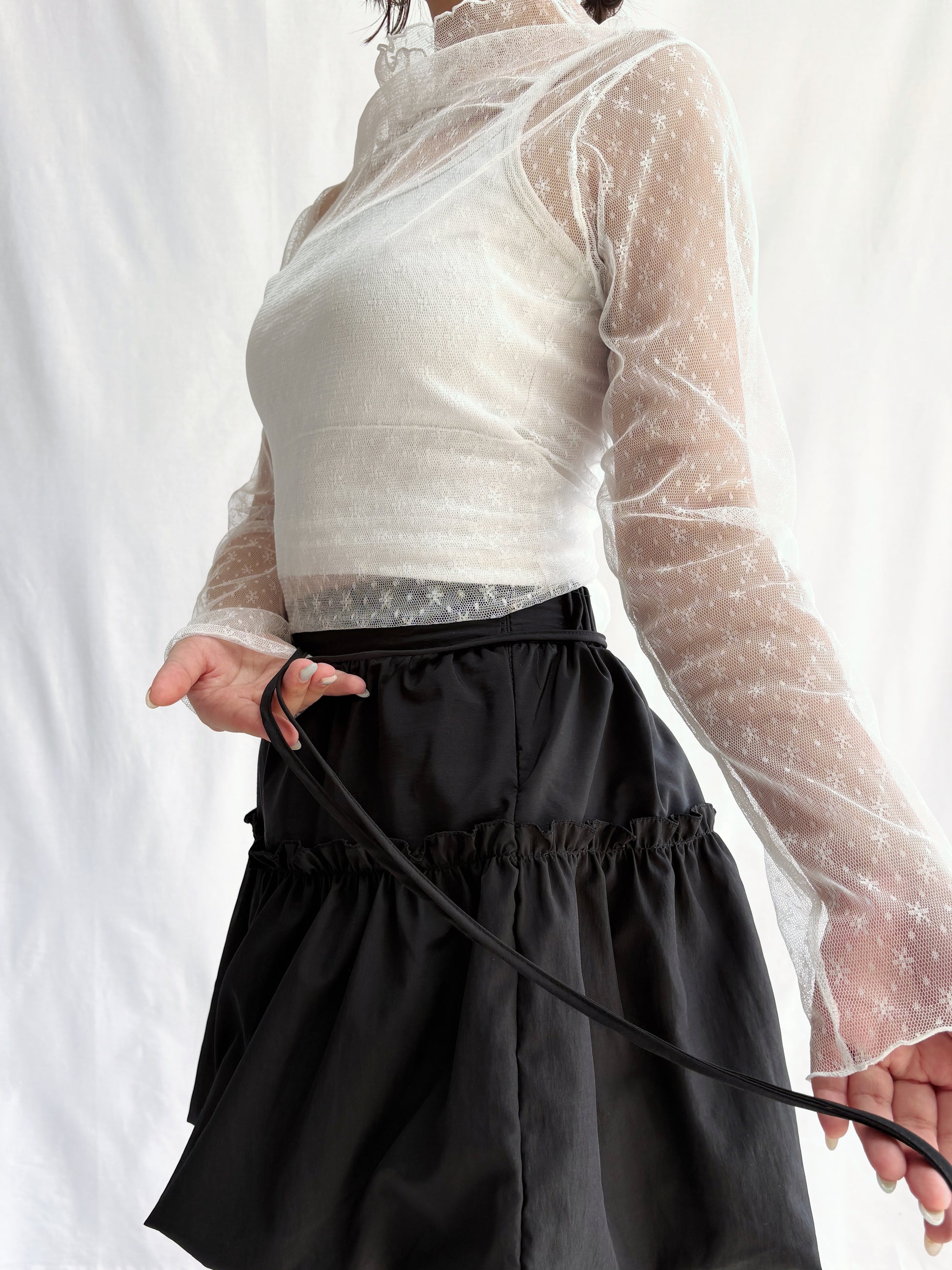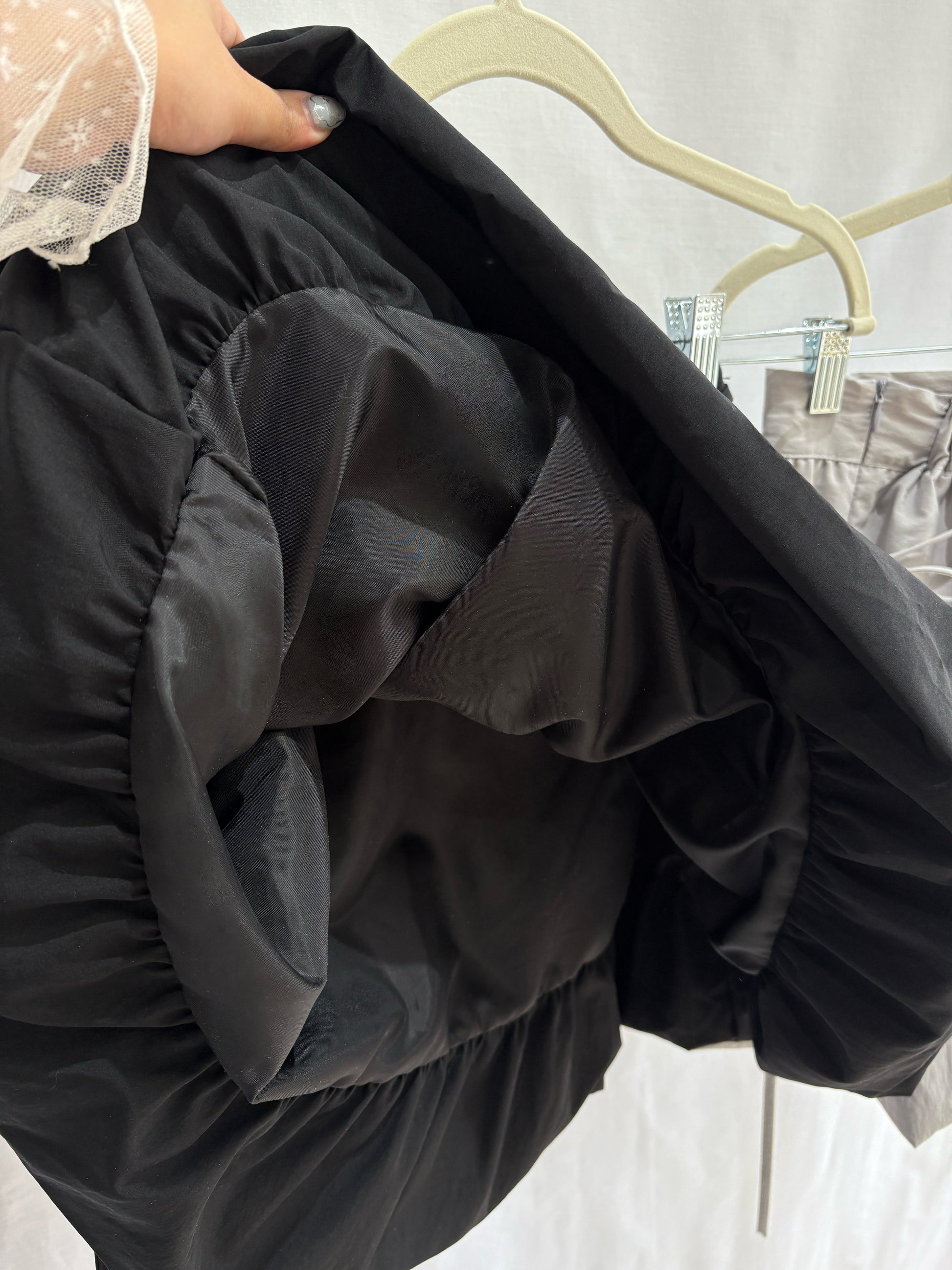 This Korean A-line bubble design offers a flattering fit, while the unremovable ribbon tie adds a unique cute touch. Its trendy puffball silhouette adds a touch of flair to any outfit. Made from soft, comfortable nylon with an elasticated high-rise waist without the added bulk of an ordinary bubble skirt.