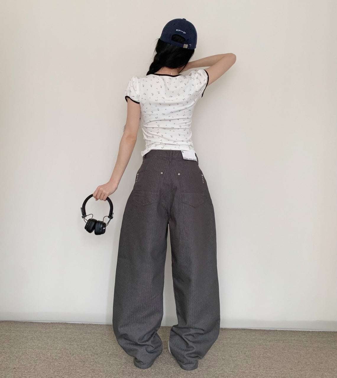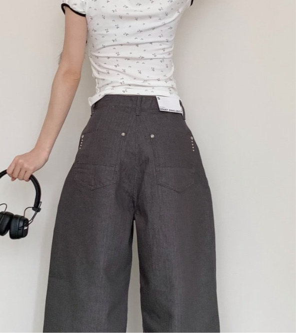 These Metal Herringbone Loose Wide Jeans combine relaxed comfort with stylish flair. Their loose, wide-leg cut offers easy movement, while the metal herringbone pattern adds a refined design that elevates your casual jeans look.