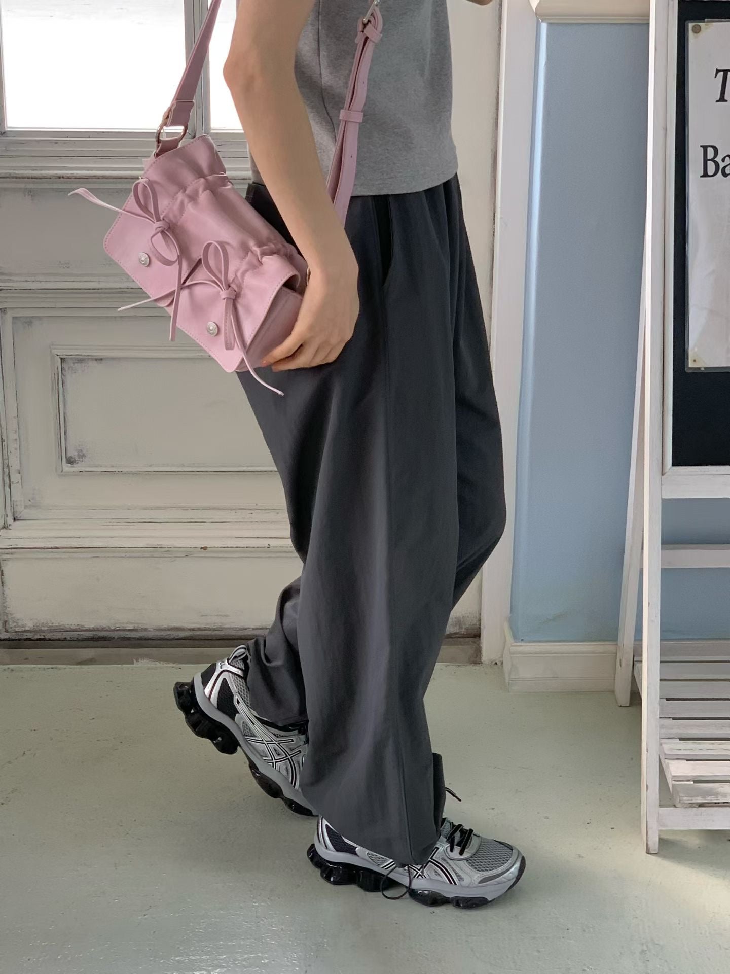 Pink Designer Brand Ribbon Leather Shoulder Bag (Large/Mini)