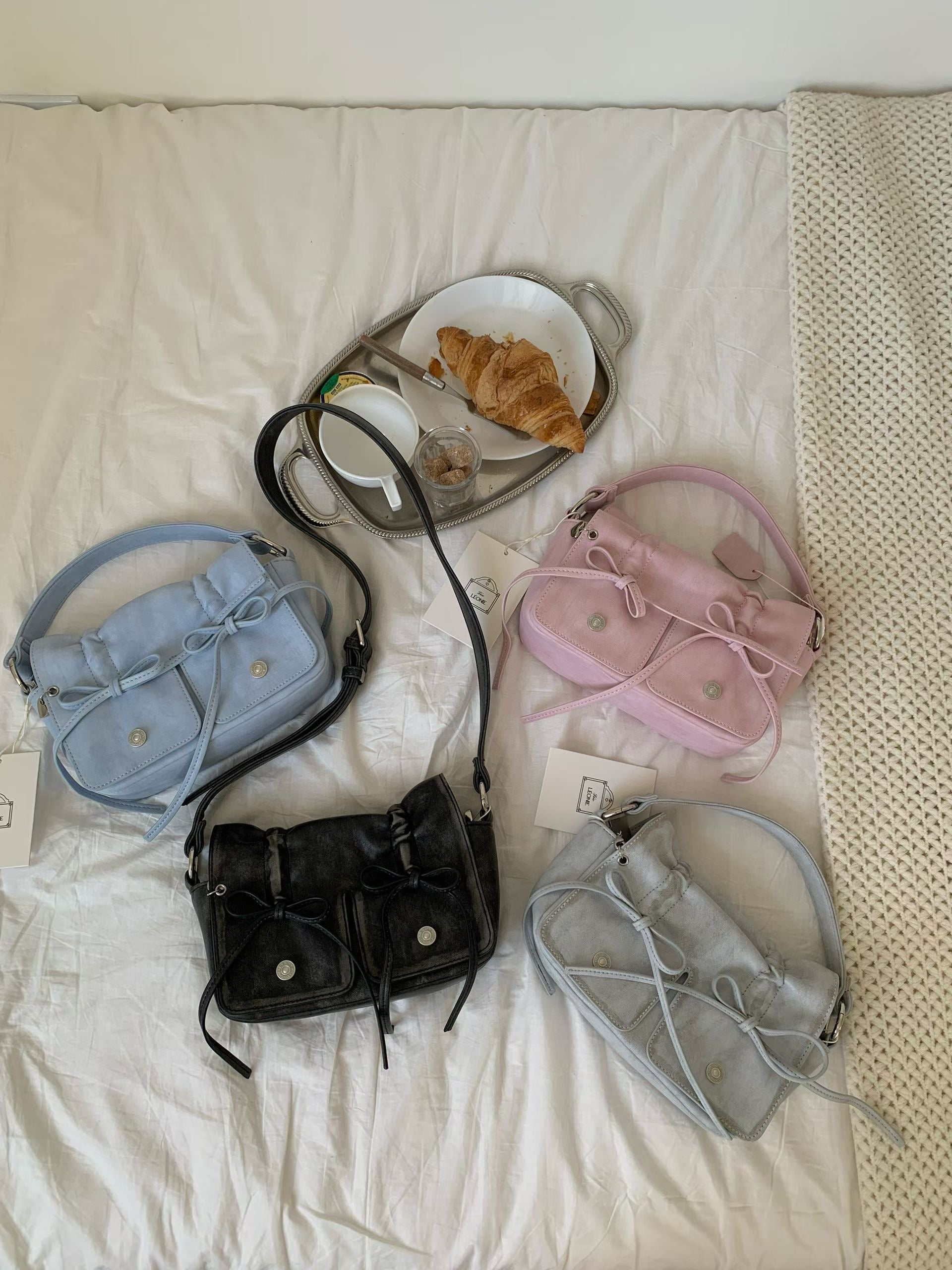Featuring a striking ribbon bow accent and premium synthetic leather construction, this bag transitions seamlessly from day to night. Available in two sizes—the spacious standard and compact mini—you can choose the perfect fit for your lifestyle.
