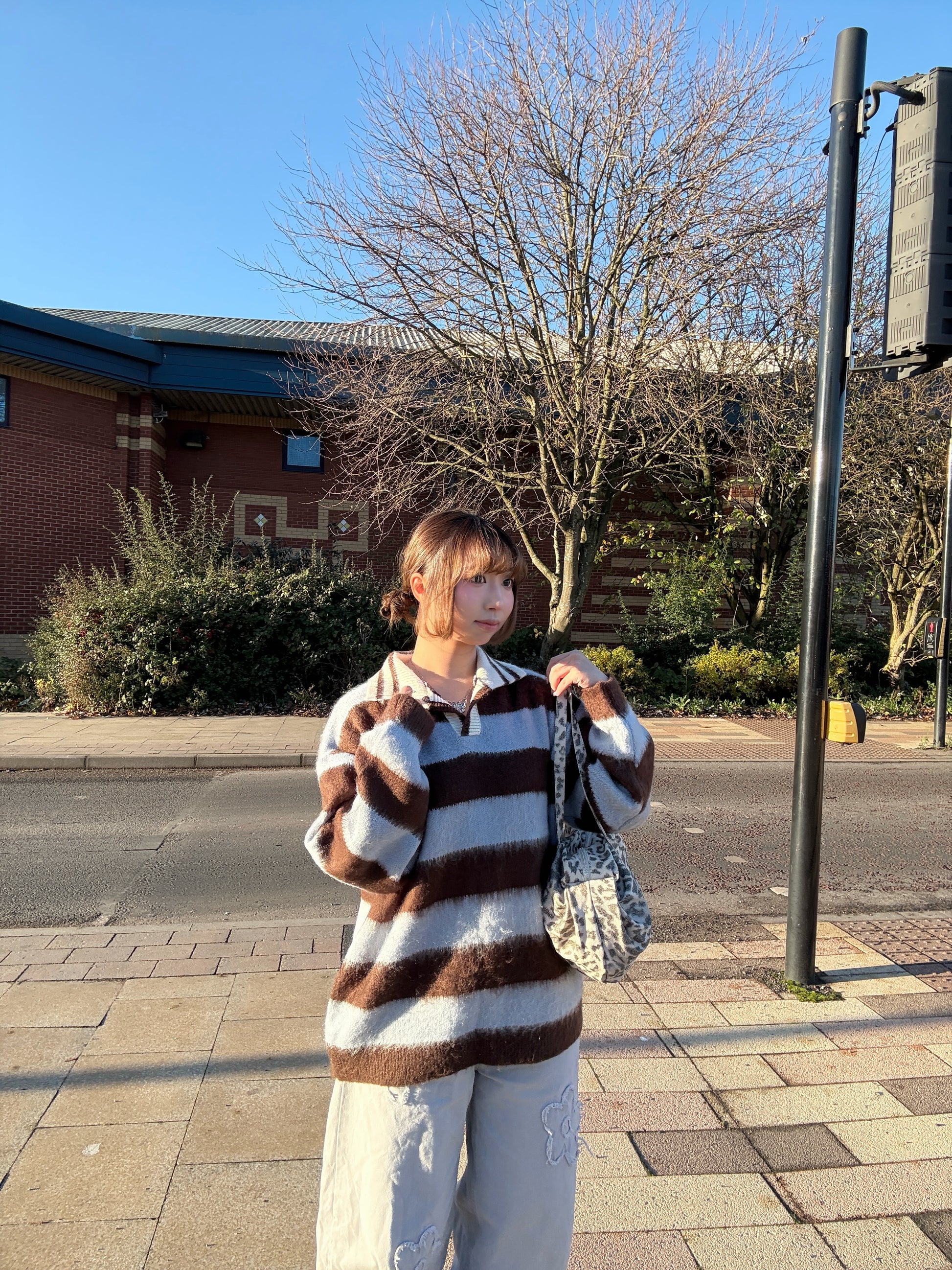 (Limited Stock) Unisex Collar Brush Striped Knitwear