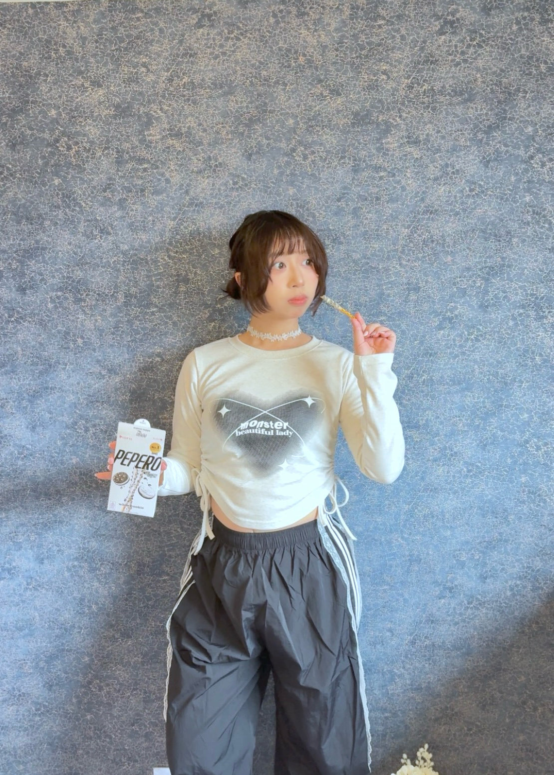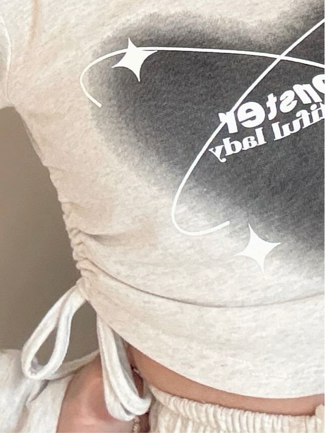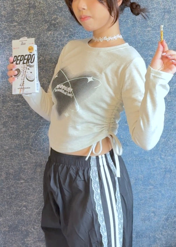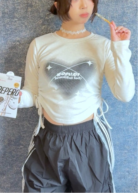 This heart T-shirt features an adjustable wrinkle ribbon, allowing for a customisable and unique look for different body shapes.