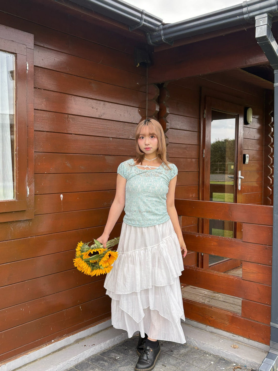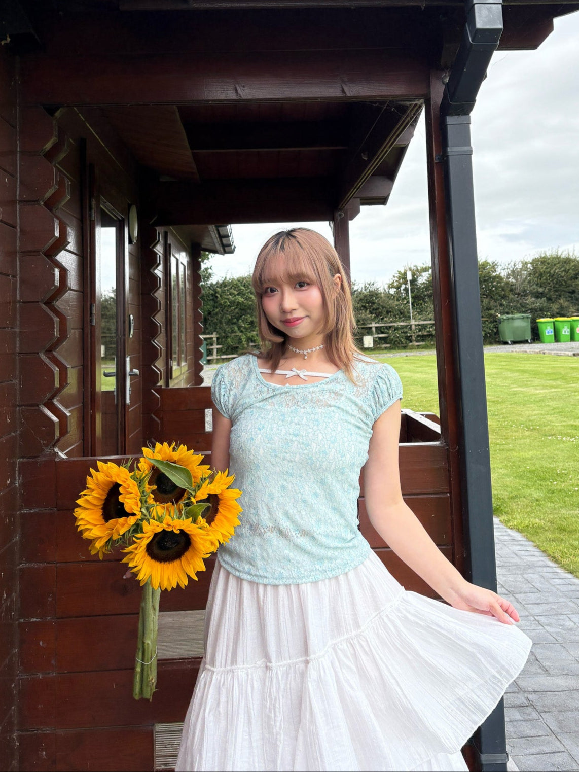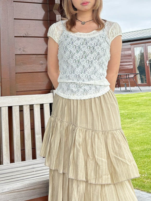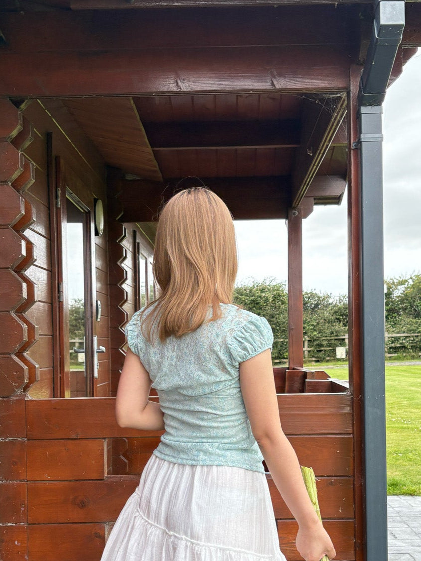 Rose sleeve lace shirring T-shirt (2 Colours)