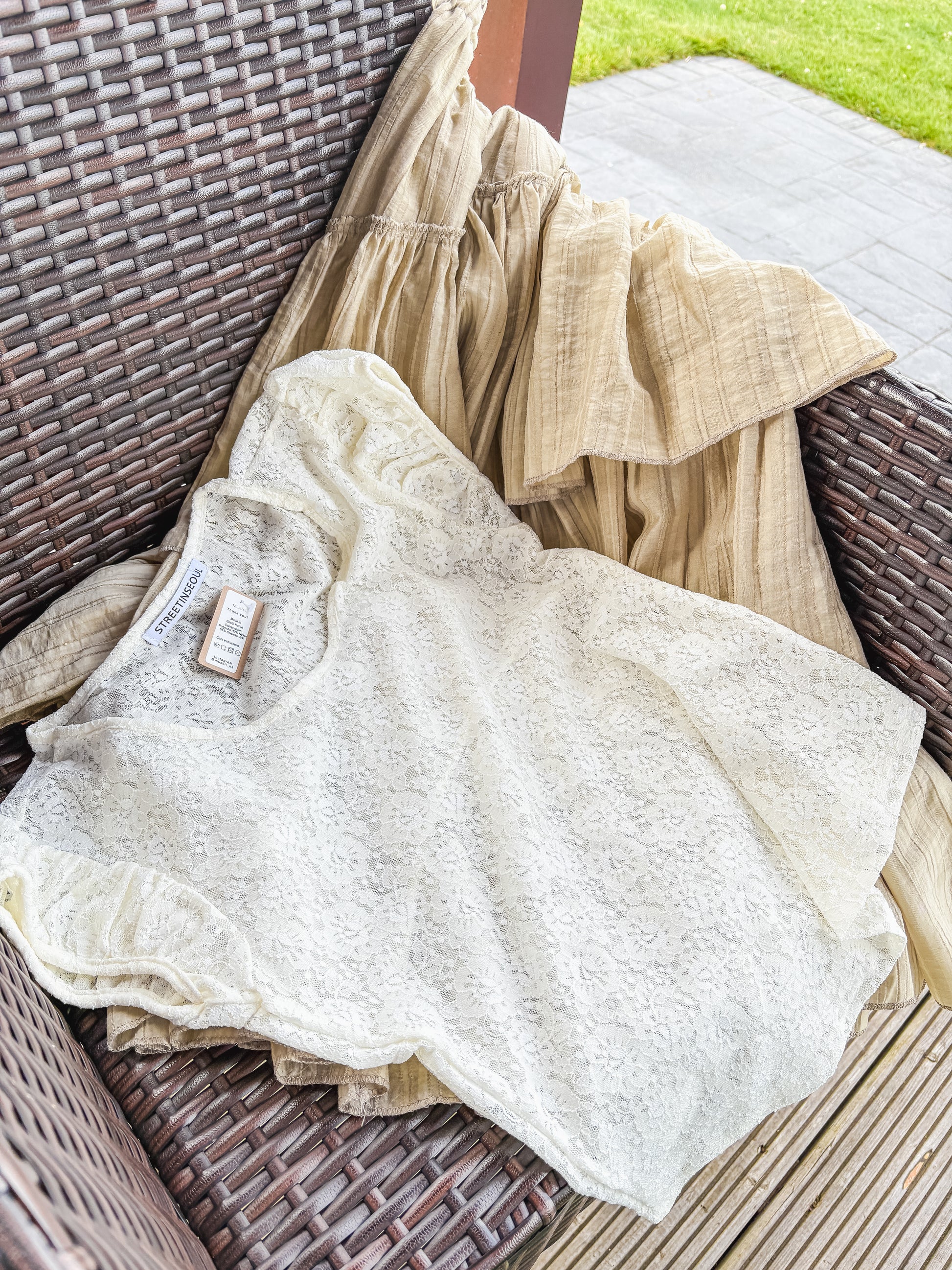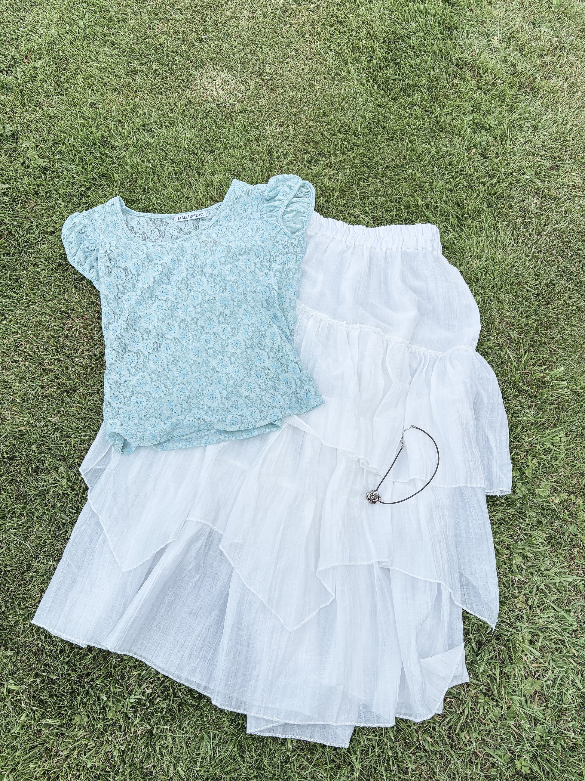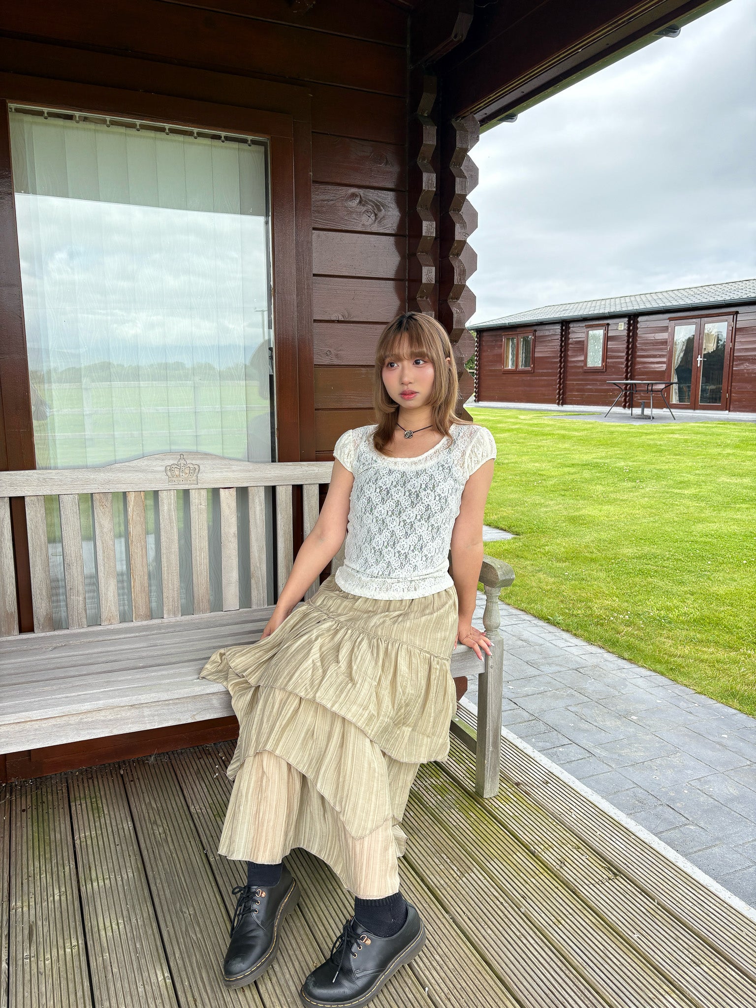 Rose sleeve lace shirring T-shirt (2 Colours)