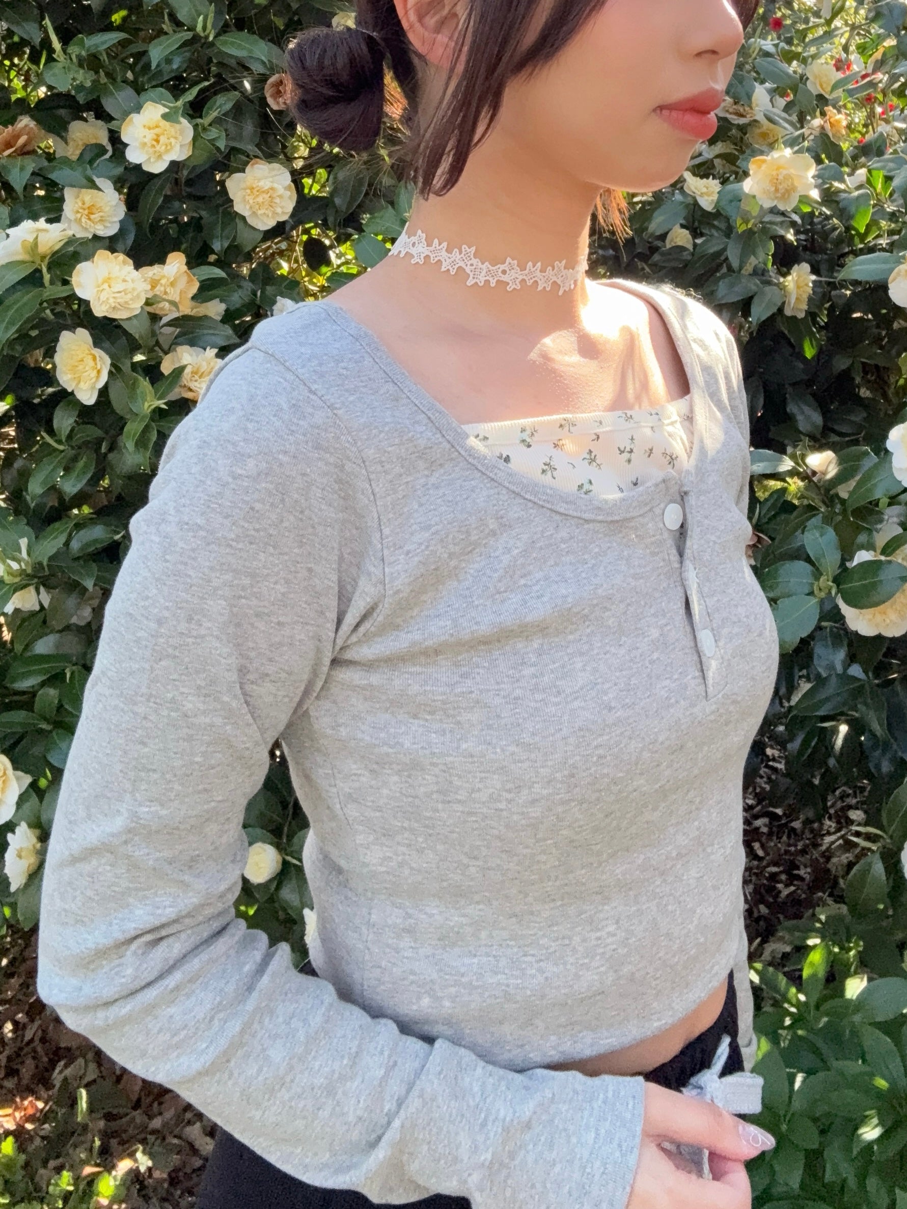 Introducing our Spring Flower Layered T-shirt. With its genie flower design, the camisole layered feature adds a touch of elegance while the round neck and slim fit provide a flattering silhouette. Made with high elasticity for a perfect fit, and mid thickness ensures it is not see-through.