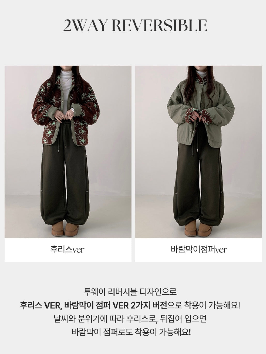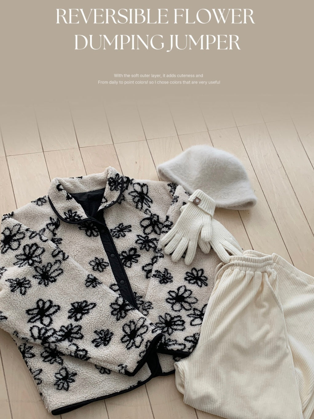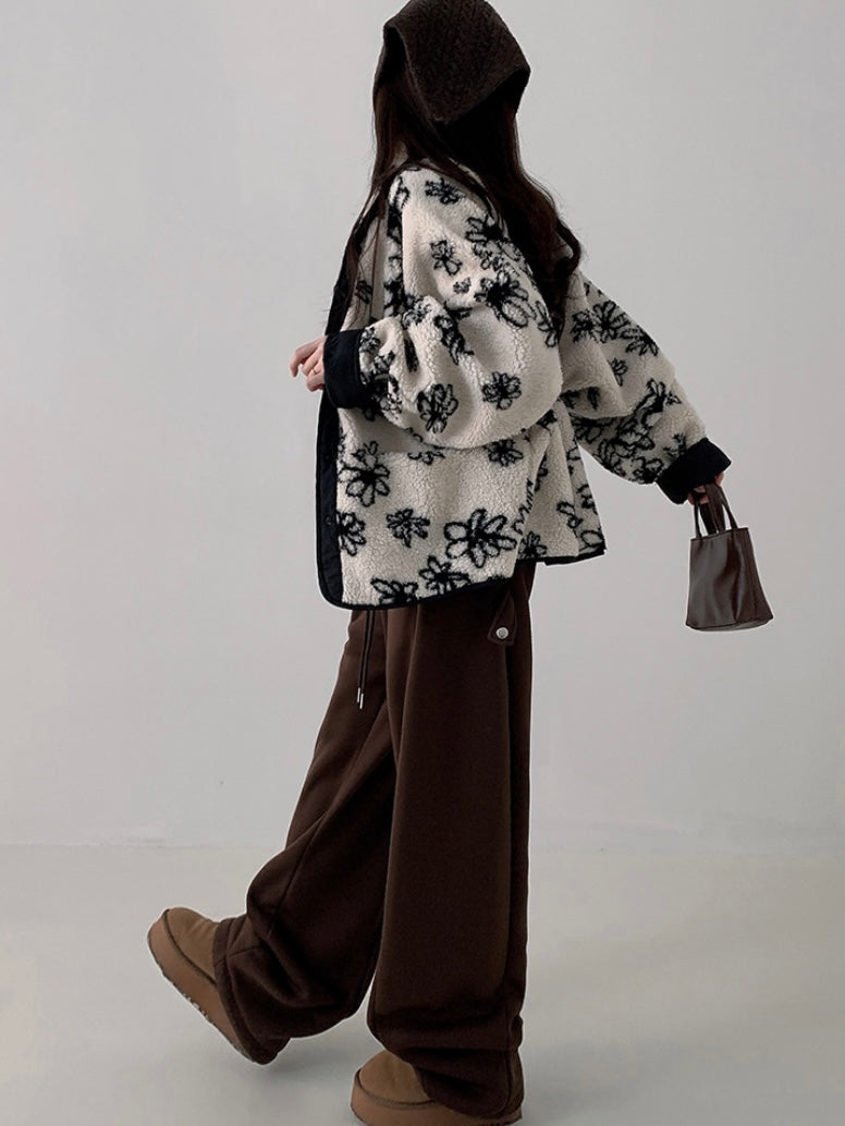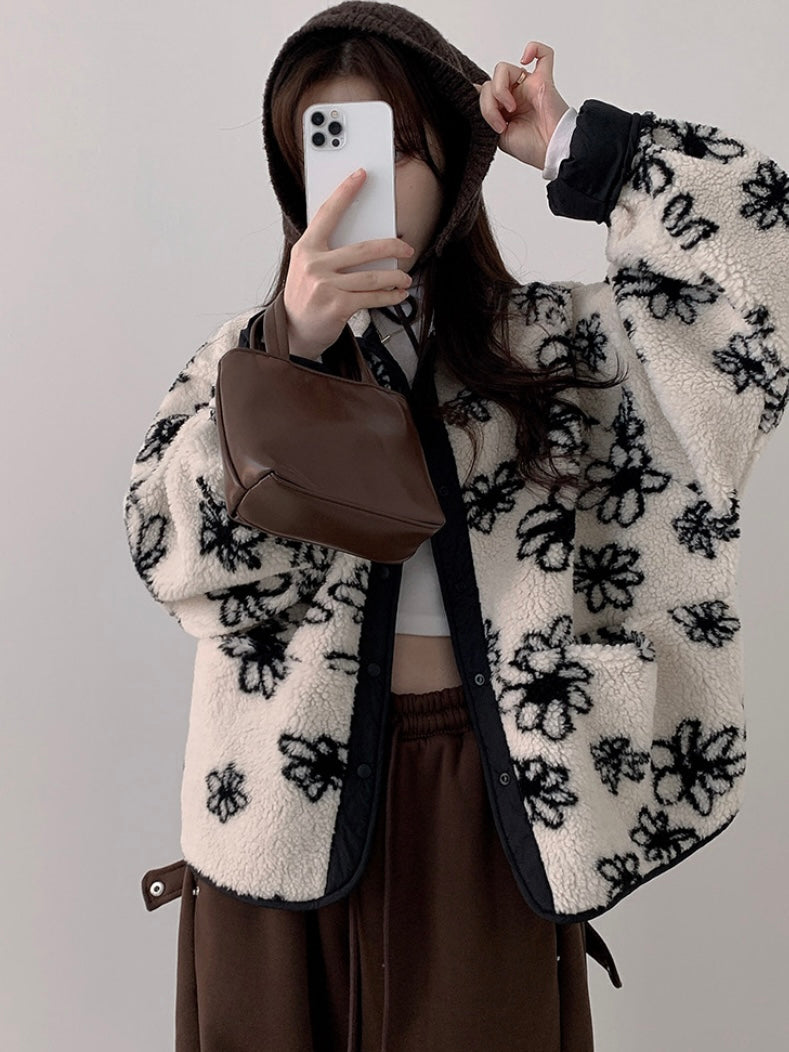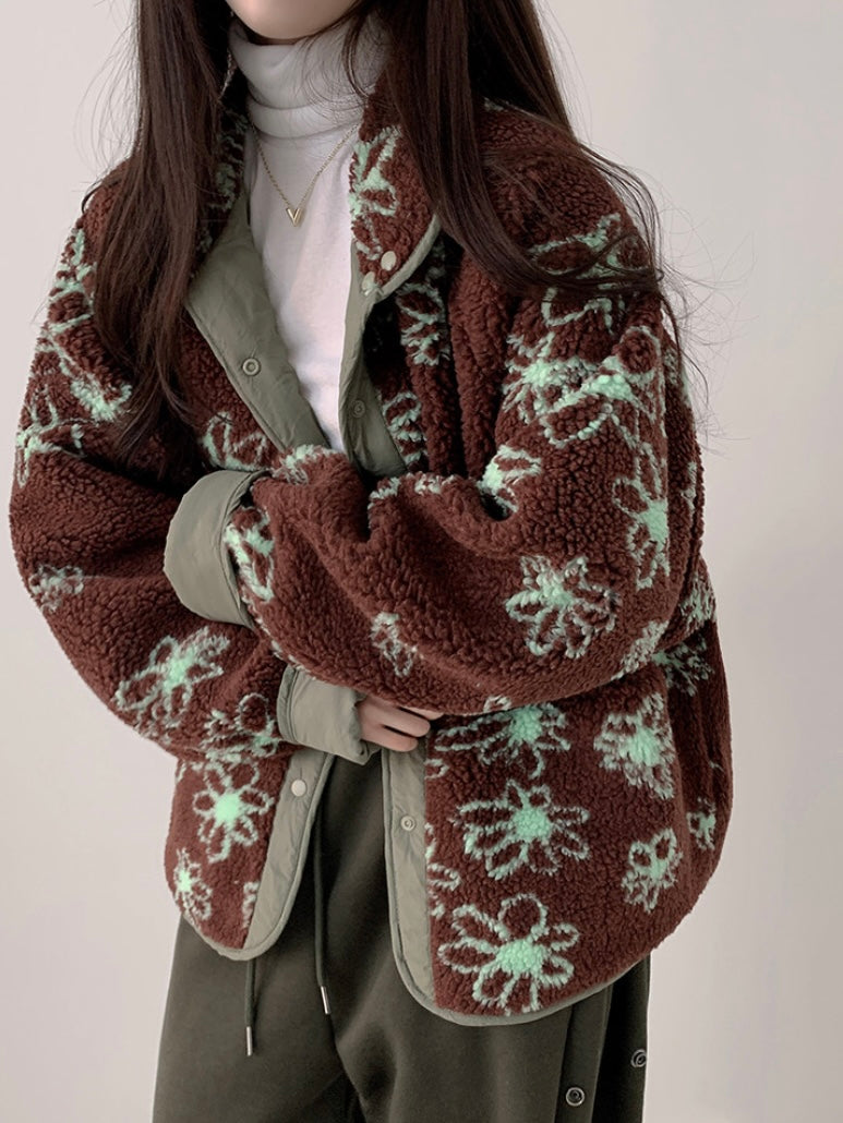 Reversible Flower Dumping Windbreaker Fleece Jacket